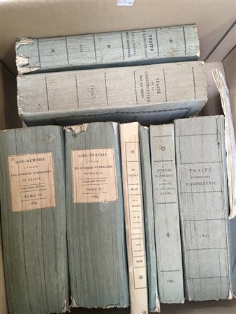 [ARTIGLIERIA] Bel lotto in brossura omogenea di trattati di artiglieria dei primi decenni del XIX secolo SI SEGNALA: Artillerie, Pyrotechnie - ouvrages anciens, rares, manuscrits qui se trouvent chez Anselin. Parigi: Anselin, 1834. 8vo, brossura coeva stampata. Catalogo del celebre editore militare in cui si offrono sia opere contemporanea che antiche. Non collazionato e difetti da esaminare.