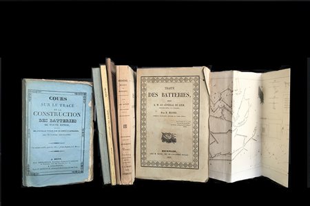 [ARTIGLIERIA] Lotto di 6 volumi: Cours sur le tracé et la construction des batteries. Metz: Verronais, 1834. 12mo, 10 tavole molte volte ripiegate. brossura coeva stampata; De l'Artillerie au XVI siècle. Parigi: Anselin, 1829. 8vo, brossura editoriale stampata; HAYEZ E. Traité des Batteries. Bruzelles: Hayez, 1835. 8vo, 3 tavole più volte ripiegate. Brossura editoriale stampata; OKOUNEF N. Mémoire sur le changement qu'une artillerie. Parigi: Anselin, 1826. 8vo, brossura editoriale stampata. BORMANN C. Considérations et expériences sur le tir des obus a balles. Parigi: Correard, 1836; MIGOUT J. C. Essai sur la théorie des affuts et des voitures d'artillerie. Parigi: Levrault, 1836. 8vo, 2 tavole più volte ripiegate. Non collazionato e difetti da esaminare.