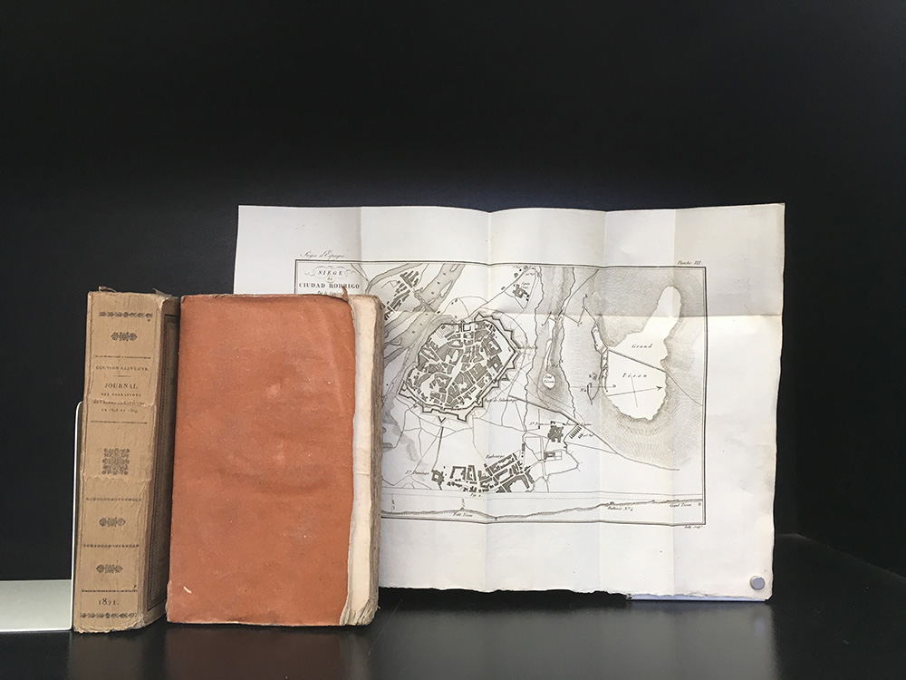 [NAPOLEONICA] Interessante insieme di 2 opere relative alle campagne napoleoniche di Spagna e Portogallo: JONES J. T. Journaux des sièges entrepris par les alliés en Espagne, pendant les années 1811 et 1812 Parigi: Ancelin et Pochard, 1821. 8vo 9 carte più volte ripiegate; GOUVION SAINT-CYR. Journal des opérations de l´armée de Catalogne, en 1808 et 1809. Parigi: Anselin et Pochard, 1821. 8vo, 1 carta e tre tabelle più volte ripiegate. Brossure eidtoriali coeve. Non collazionato e difetti da esaminare.
