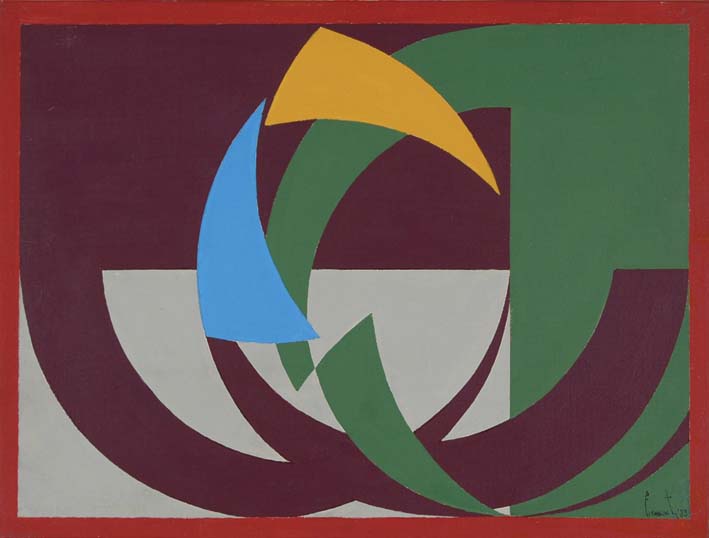 LORENZO PIEMONTI Milano 1935 Percorso 1983 acrilici su tela, 36x48 firma e data in basso a destra e al retro autentica dell'Autore su foto