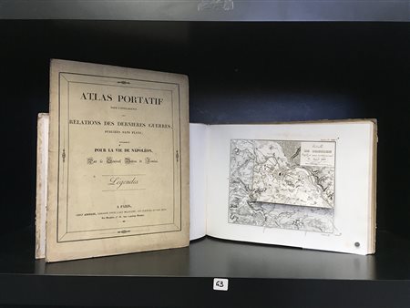 [NAPOLEONICA] JOMINI A. H. Atlas portatif des relations des dernières guerres...notamment pour la vie de Napoleon. Parigi: Anselin, [c.a 1840]. 2 voll, Folio. 29 carte di schieramenti acquarellate e 5 carte geografiche più volte ripiegate. Legatura editoriale in cartonato stampato ( lievi difetti). Non collazionato e difetti da esaminare.