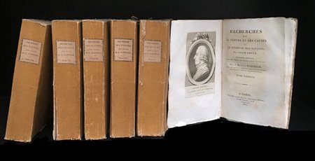 SMITH A. Recherches sur la nature et des causes de la richesse des Nations. Seconde edition...; par le Marquis Garnier. Parigi: Agasse, 1822. 6 volumi, 8vo, ritratto di Smith in antiporta (qualche lieve fioritura). Legatura editoriale in brossura con titolo su tassello stampato al dorso (qualche strappo). Non collazionato e difetti da esaminare.