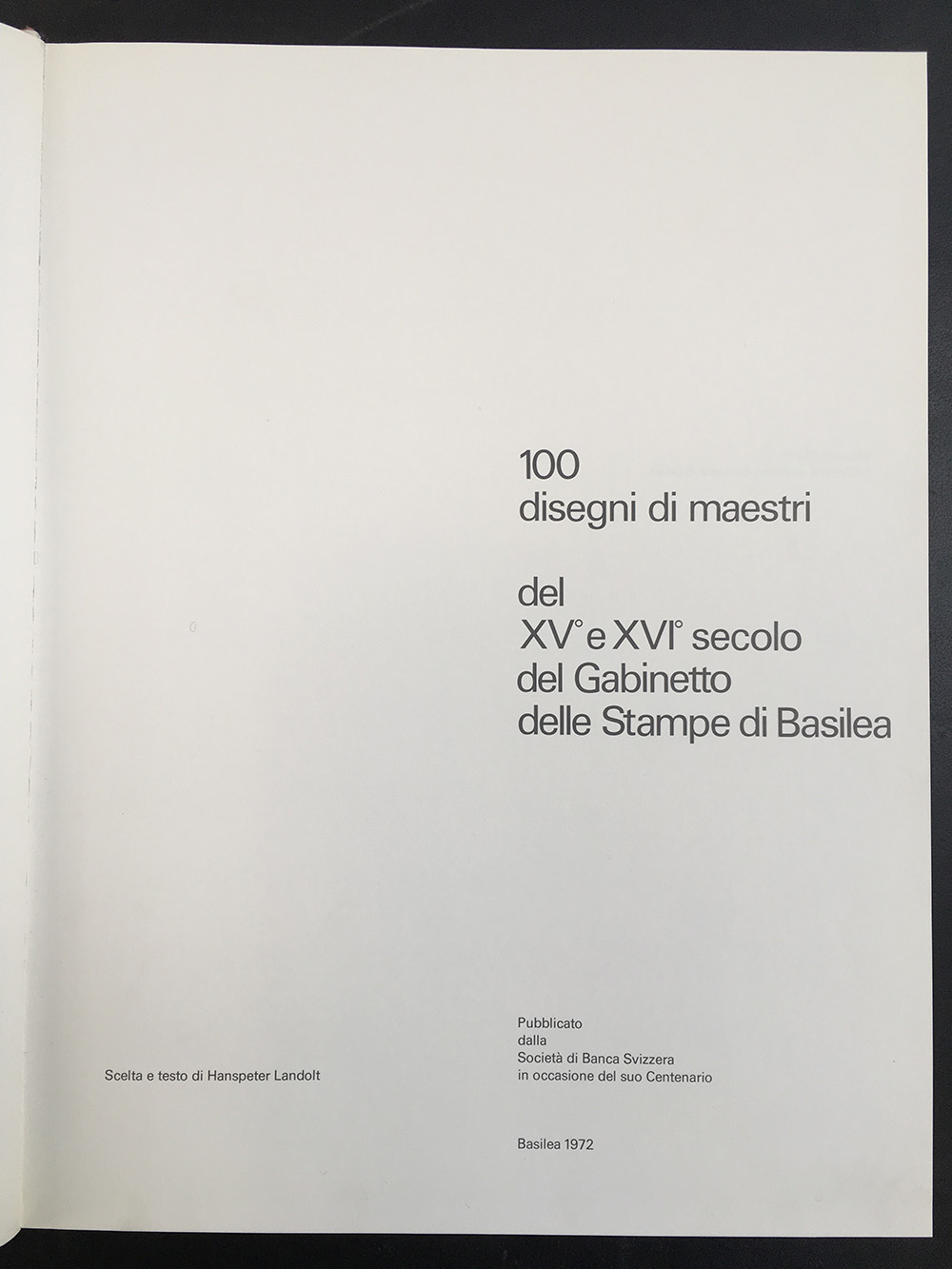 100 DISEGNI DI MAESTRI del XV° e XVI° secolo del gabinetto delle stampe di Basilea. – Basilea, 1972. In-folio; legatura editoriale con custodia. 100 illustrazioni a colori di disegni con testo di H. Landolt. Non collazionato e difetti da esaminare.