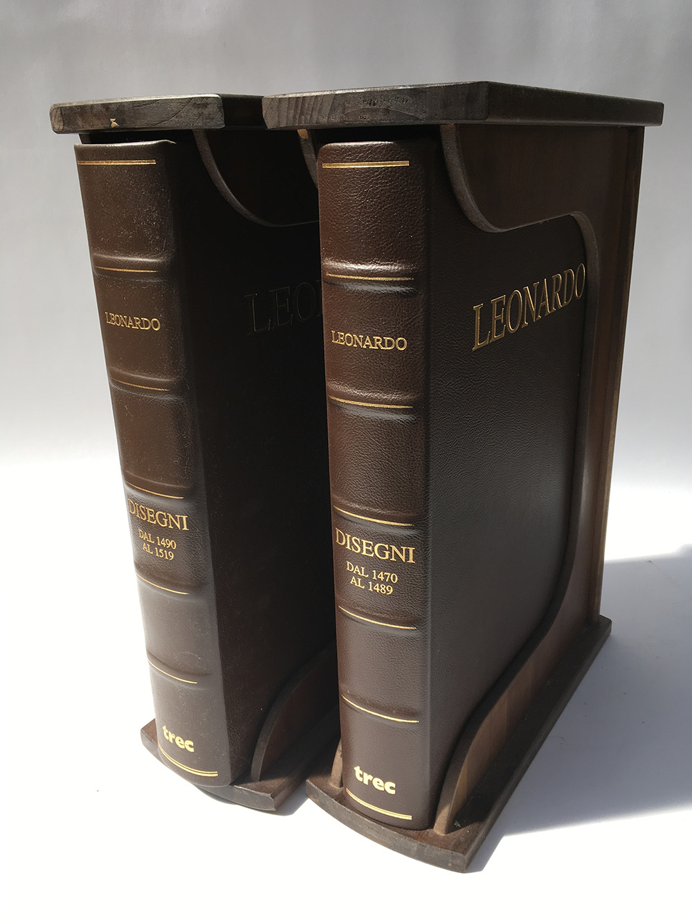 DA VINCI, Leonardo, Disegni. 1470-1489; Disegni. 1490-1519. Roma: TREC Edizioni Pregiate, 2004. Folio gigante, 2 voll. Rilegature in tutta pelle con titioli in oro al dorso, cofanetto di sostegno in legno verniciato. Esemplari n. 979/1999