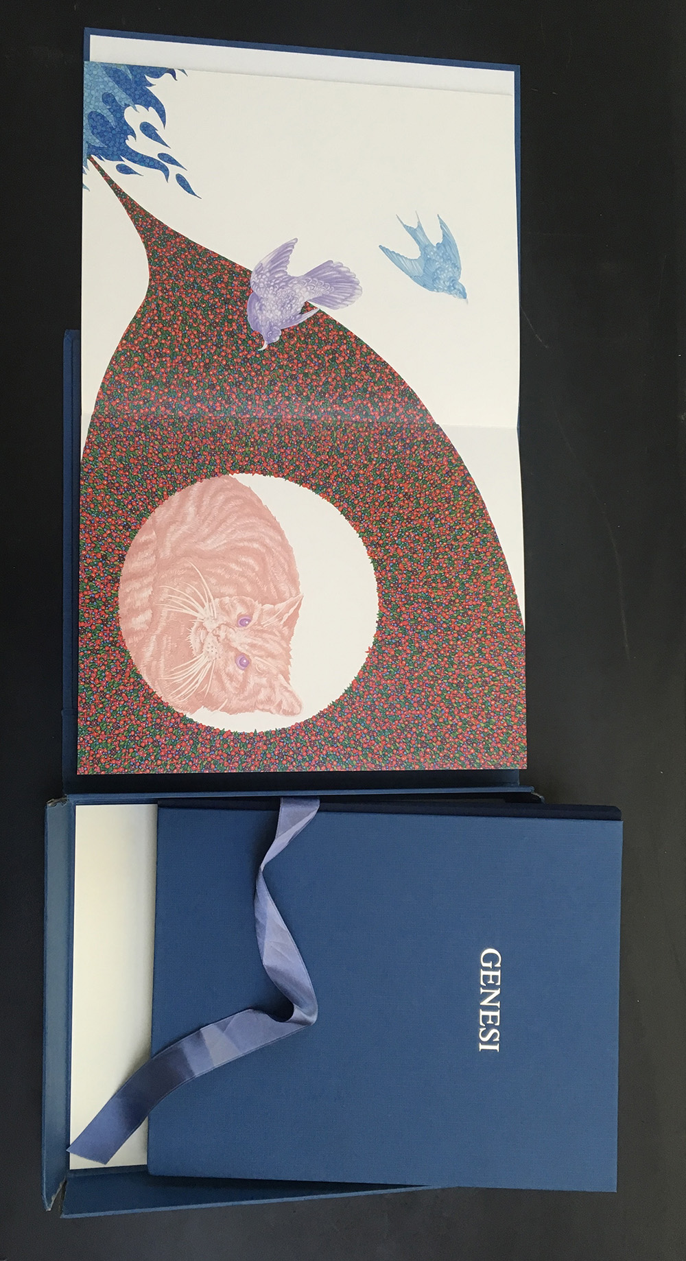 GRASSO FRAVEGA G. Il Primo libro di Moisè detto Genesi. [Vicenza] 2008. 4to, 2 voll numerose tavole a colori di Giovanni Grasso Fravega. Custodia in tutta tela azzurra. Esemplare n 40 di 233 esemplari realizzata per Giancarlo Beltrame firmati dall’artista. Non collazionato e difetti da esaminare.