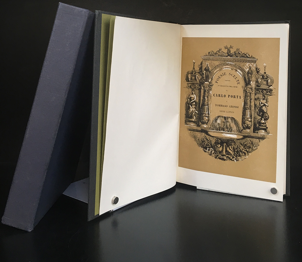 PORTA C. - GROSSI T.. Poesie scelte in dialetto milanese. Edizione illustrata da Gonin, Riccardi, Sacchi.. Milano: Guglielmini e Redaelli, 1842. (ma Milano: Nuova editrice internazionale, 1965) 8vo grande, cofanetto editoriale. Non collazionato e difetti da esaminare.