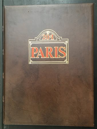 TAMBURI, Orfeo e Nino FRANK. Paris 20+1. Roma: Il Cigno, 1979. Esemplare a tiratura limitata, copia n. 58 di 150 dedicato a Dino Monferini. 3 volumi in folio elefante nei quali sono contenute 20 incisioni originali in acquaforte e aquatinta a molti colori, 127 disegni appositamente realizzati per questa edizione e un'incisione originale in acquaforte successivamente colorata a mano dall'Autore in copia uniche non numerate. Il tutto in fogli sciolti racchiuso in cofanetto editoriale in pelle con titolo stampato in rosso al piatto anteriore. Con certificato di autenticità del club "le firme". Non collazionato e difetti da esaminare.
