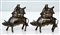 Coppia di piccole sculture in bronzo a due sezioni raffiguranti saggi su...