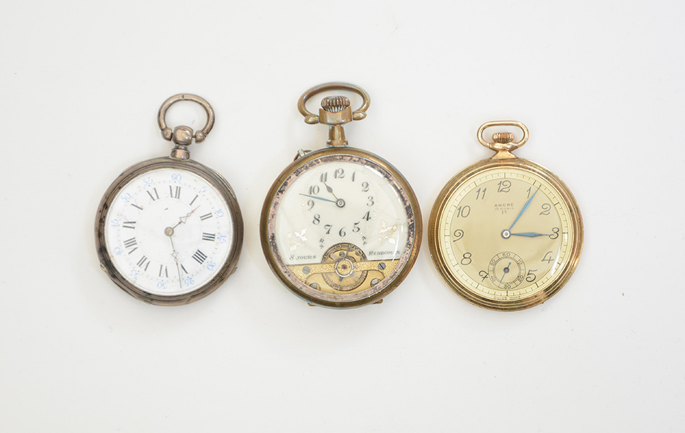 Lotto composto da tre orologi da tasca di diverse epoche e materiali