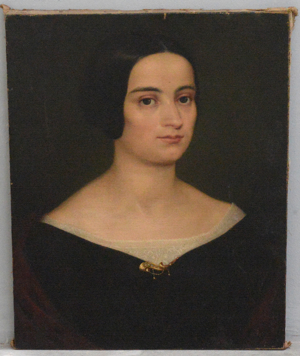 Scuola del secolo XIX “Ritratto femminile” olio su tela (cm 55,5x44) (difetti e restauri)