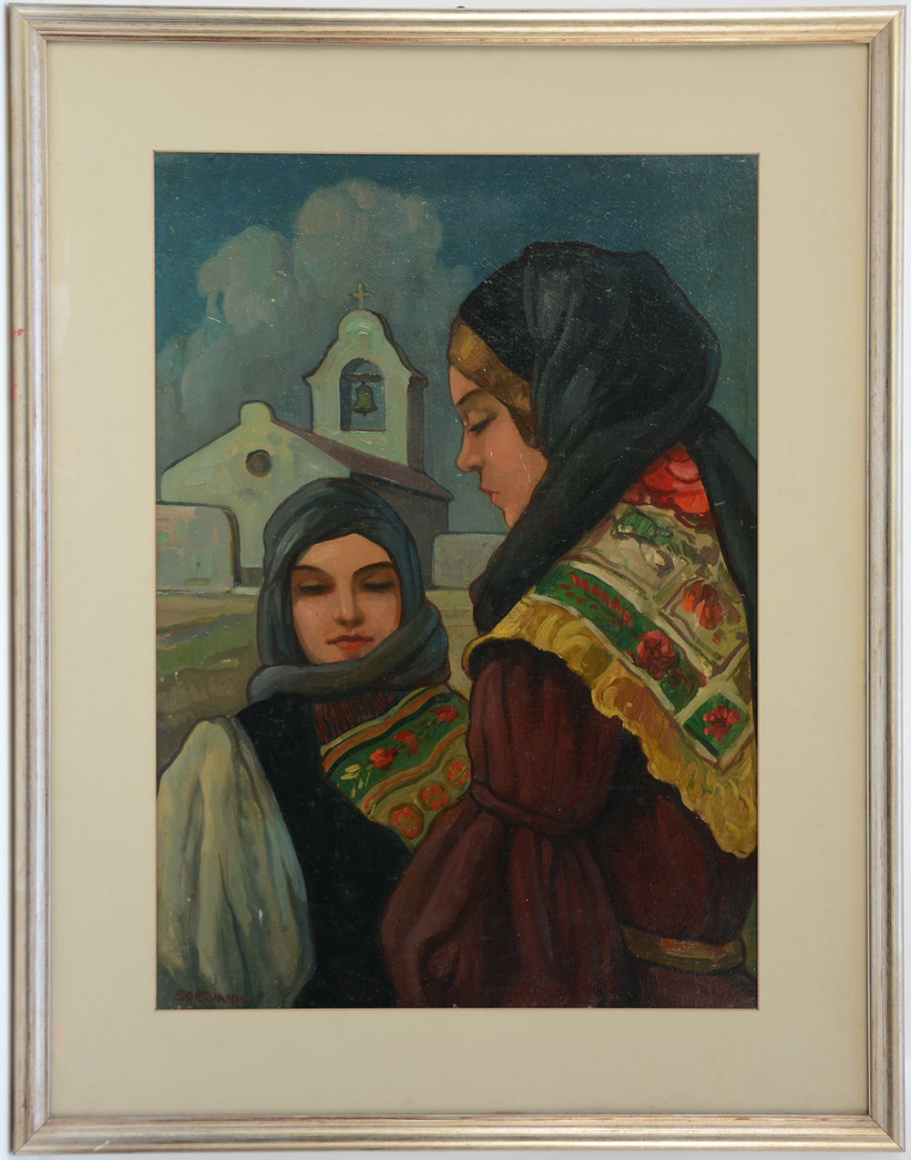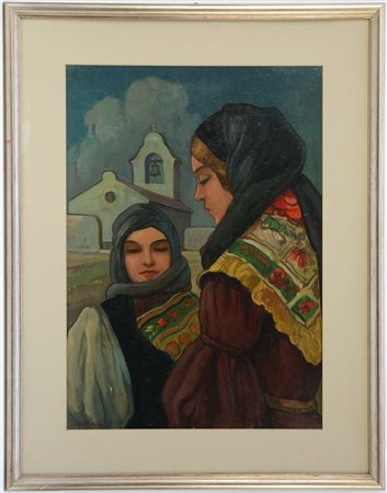 Giuseppe Sorgiani (1889 - 1952)"Le cadorine" olio su cartone (cm 67x47)...