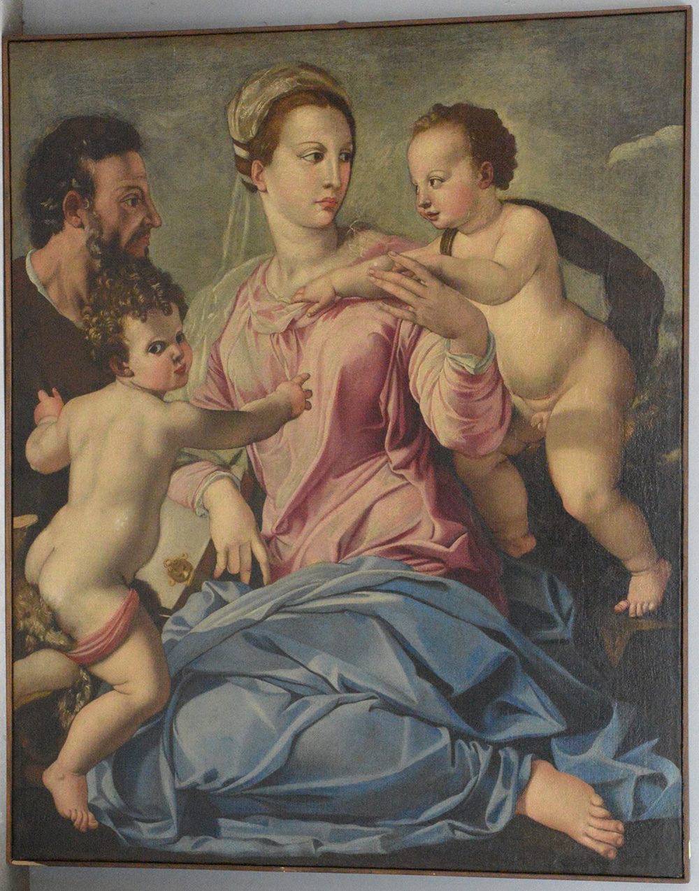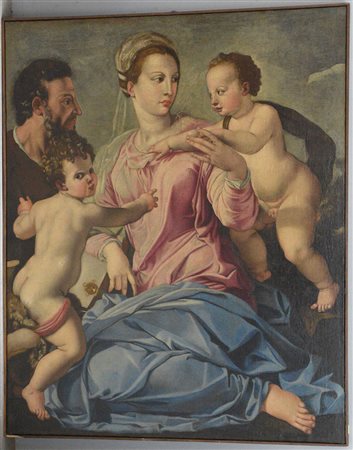 Scuola italiana del secolo XIX, da Bronzino, “Sacra Famiglia” olio su tela (cm 116,5x95,5) (difetti e restauri)