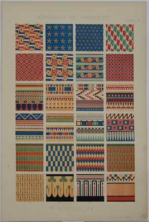 "Grammar of Ornament" Gruppo di 18 rare litografie a colori con ricche...