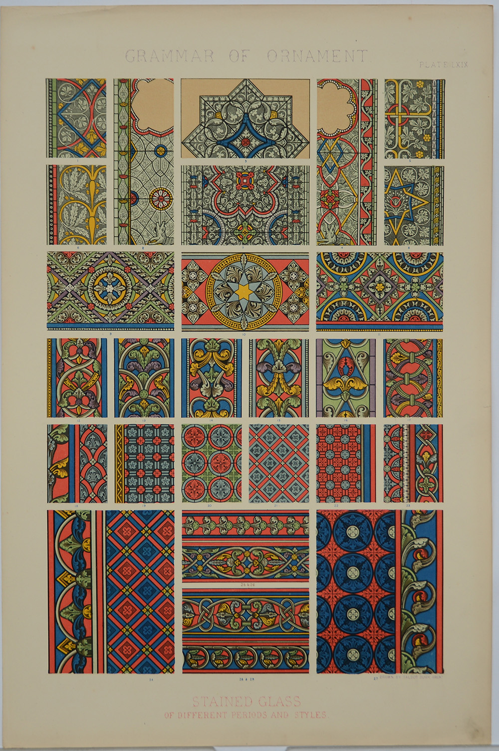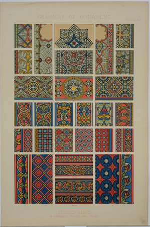 "Grammar of Ornament"Gruppo di 12 litografie a colori con ricche decorazioni...