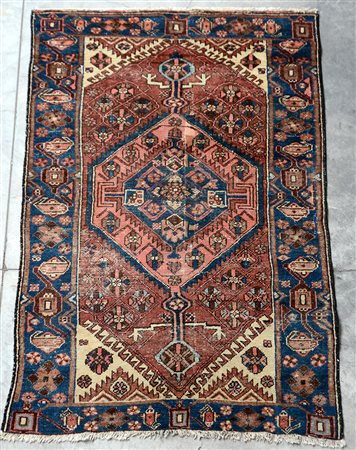 Tappeto Hamadan, Persia secolo XX. Decoro con medaglione esagonale rosa su...