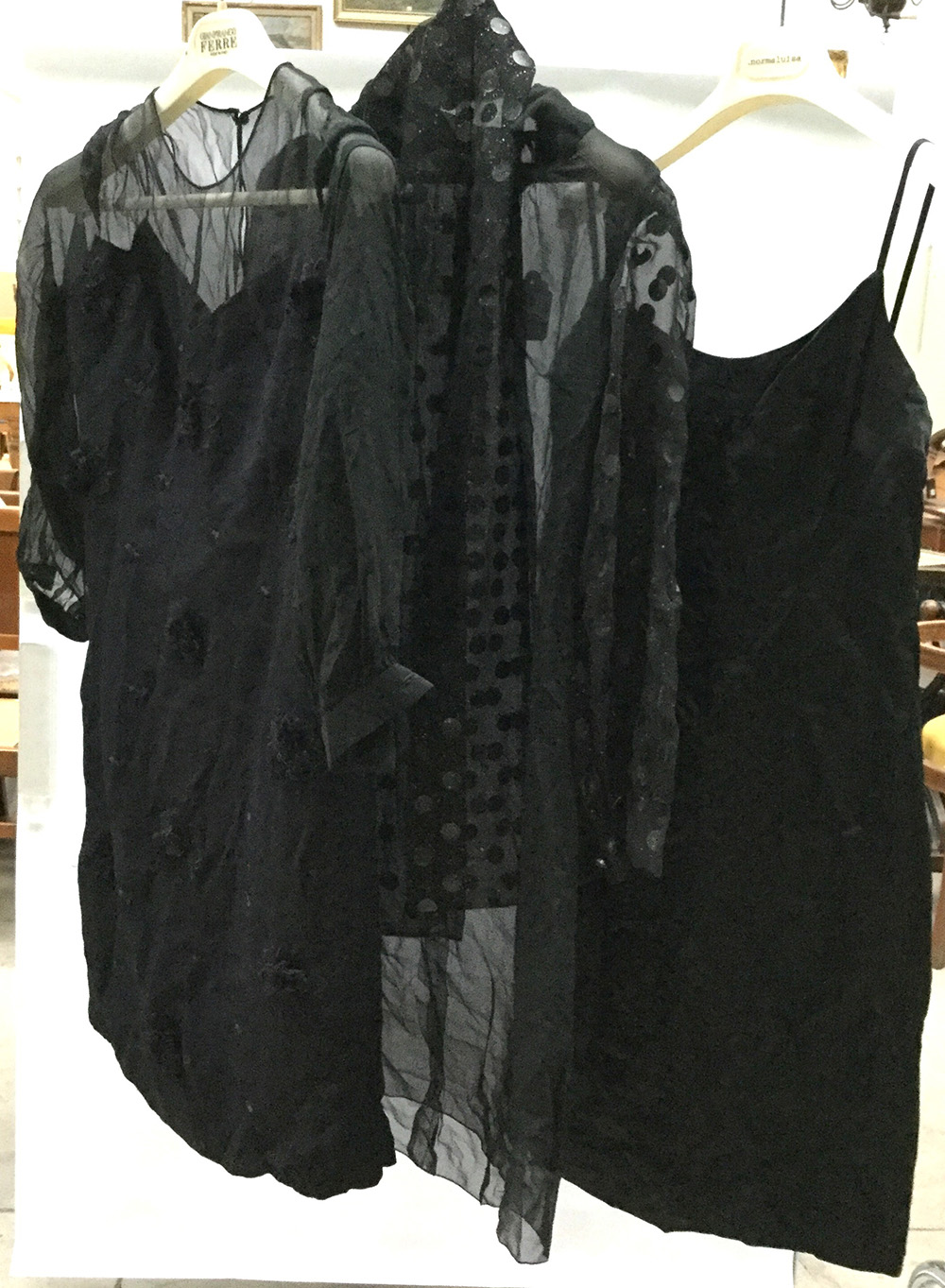 Lotto composto da tre abiti da donna neri sartoriali e una fascia (difetti)