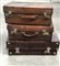 Lotto di tre valigie in cocco stampato, color cuoio di diverse dimensioni (difetti e macchie)