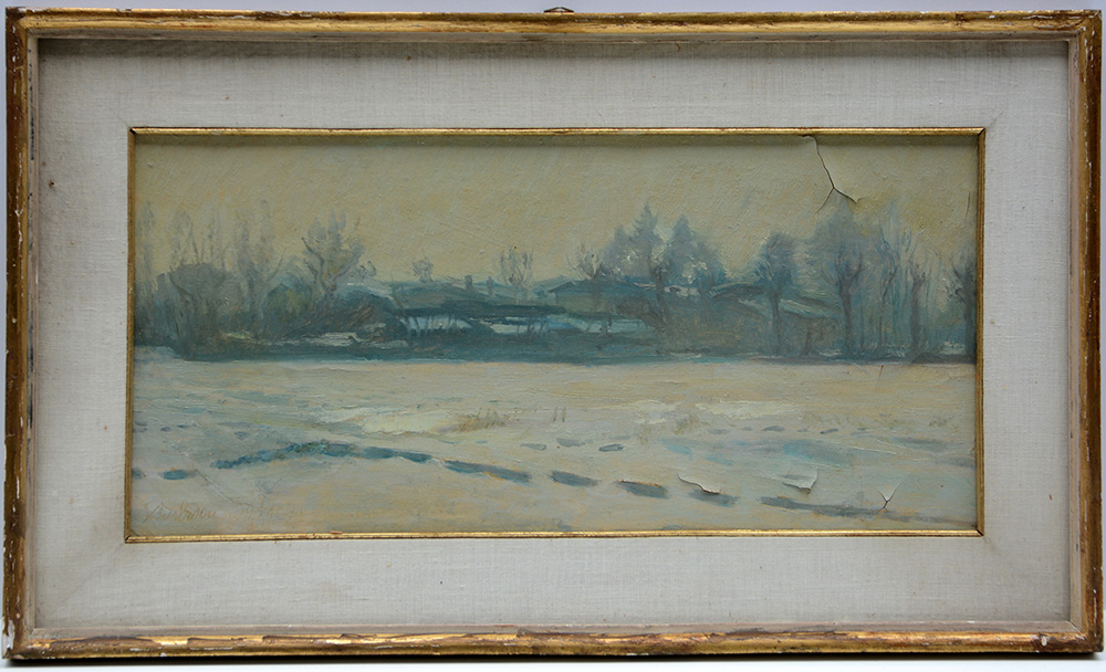 Giovanni Barbisan (Treviso 1914 - Orbetello 1988)"Nevicata" 1954olio su...
