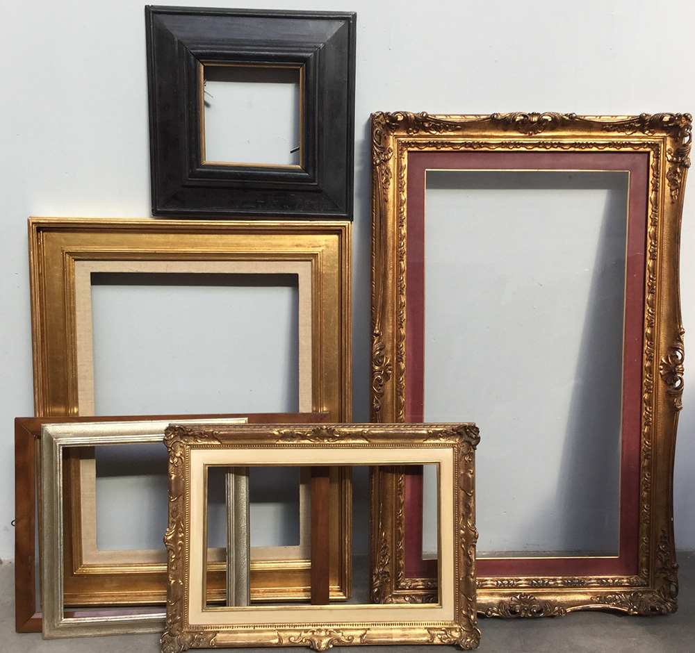 Lotto di sei cornici di fatture e dimensioni differentii (difetti)