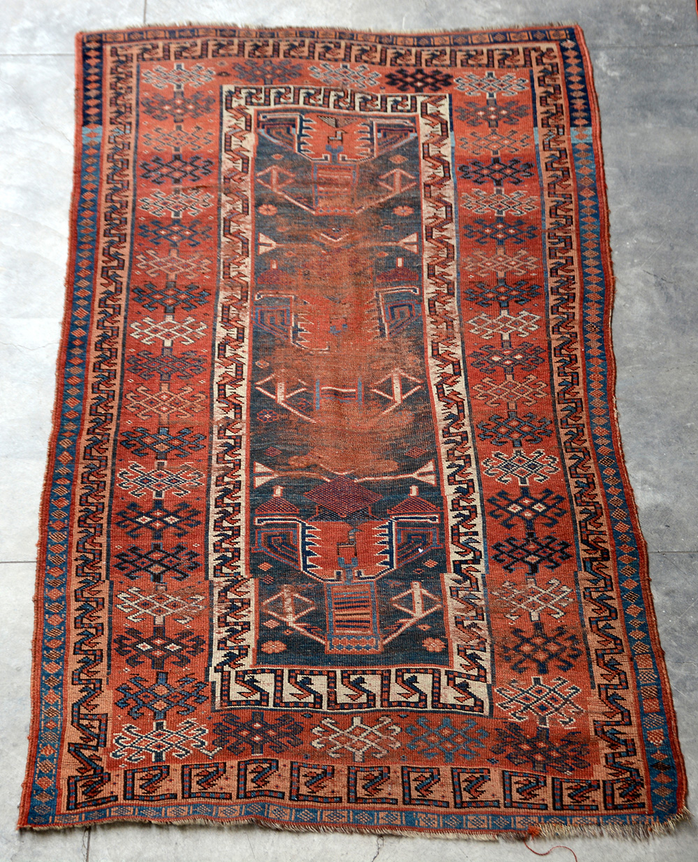 Tappeto Loristan, Persia fine secolo XIX. Decoro geometrico su fondo verde cm...