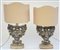 Coppia di lampade a una luce con sostegno a forma di vaso in lamina di rame argentato (difetti)