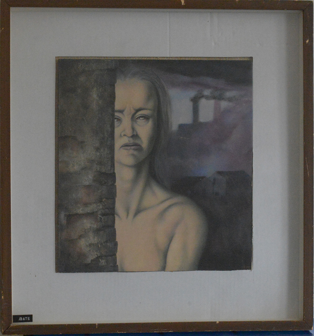Antonio Abate "Figura" tecnica mista su tavola (cm 36x33) siglato e datato 1977 in basso a destra, firmato e iscritto al verso, in cornice