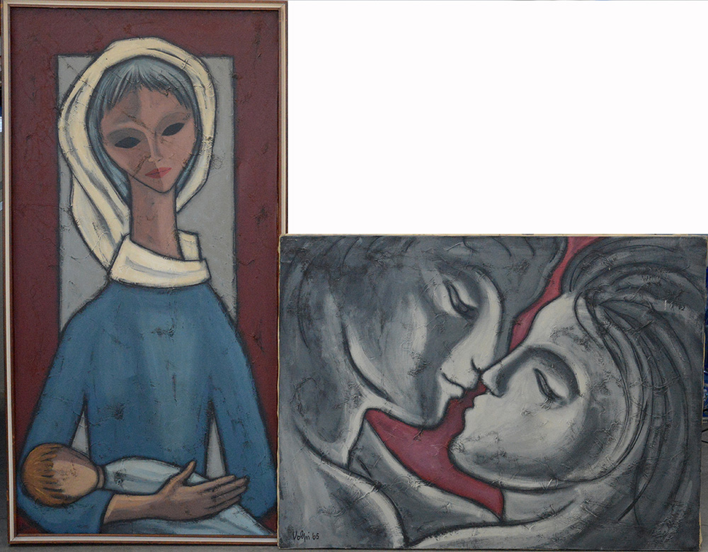 Alberto Volpi - lotto di due dipinti figurativi ad olio su tela, misure differenti, uno in cornice (difetti)