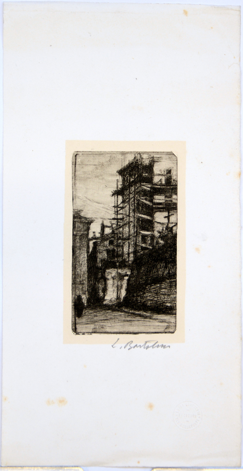 firmata in basso a destra a matita, timbro a secco in basso a destra ""Luigi Bartolini incisore all'acquaforte" (lievi difetti)