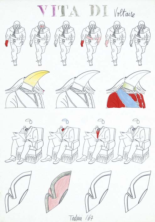 EMILIO TADINI Milano 1927 - 2002 Vita di Voltaire 1967 tecnica mista su carta, 50x35 firma e data in basso al centro titolo in alto