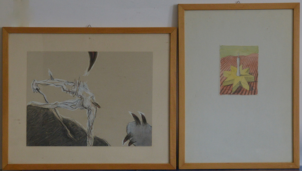 Lotto di due opere a tecnica mista di autori e misure differenti, in cornici (lievi difetti)