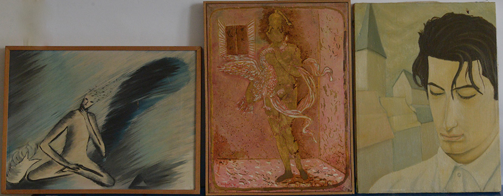Lotto di tre opere figurative di autori e tecniche differenti (cm 30x40), due...