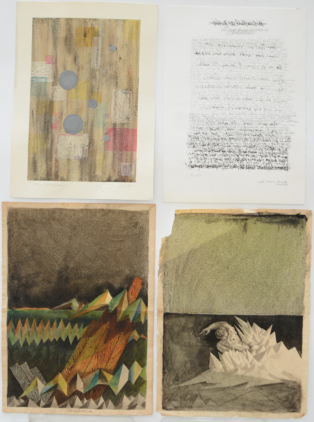 lotto composto da quattro tecniche miste su carta di autori e misure...