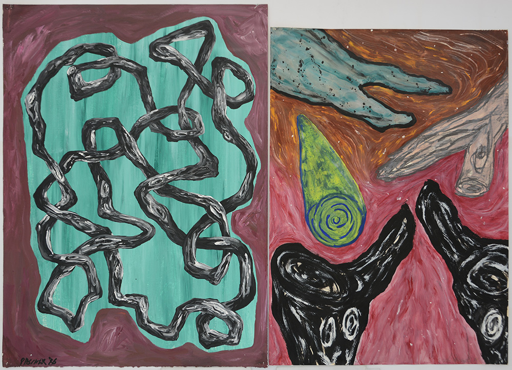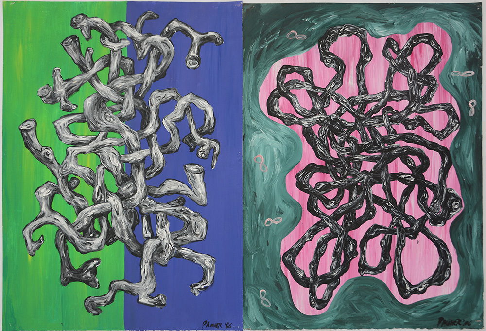 tre opere firmate e datate '86 al fronte, una firmata e datata 1985 al retro (lievi difetti)