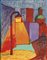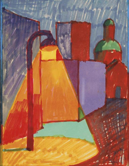 SALVO Leonforte (En) 1947 La città 2002 tecnica mista su carta intelata, 22x16,5 firma e titolo in basso a destra autentica dell'Autore su foto esposizioni Giampiero Biasutti Arte Moderna e Contemporanea Torino - etichetta al retro