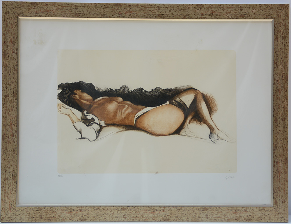 Renato Guttuso (Bagheria 1912 - Roma 1987)"Nudo disteso" litografia offset a...