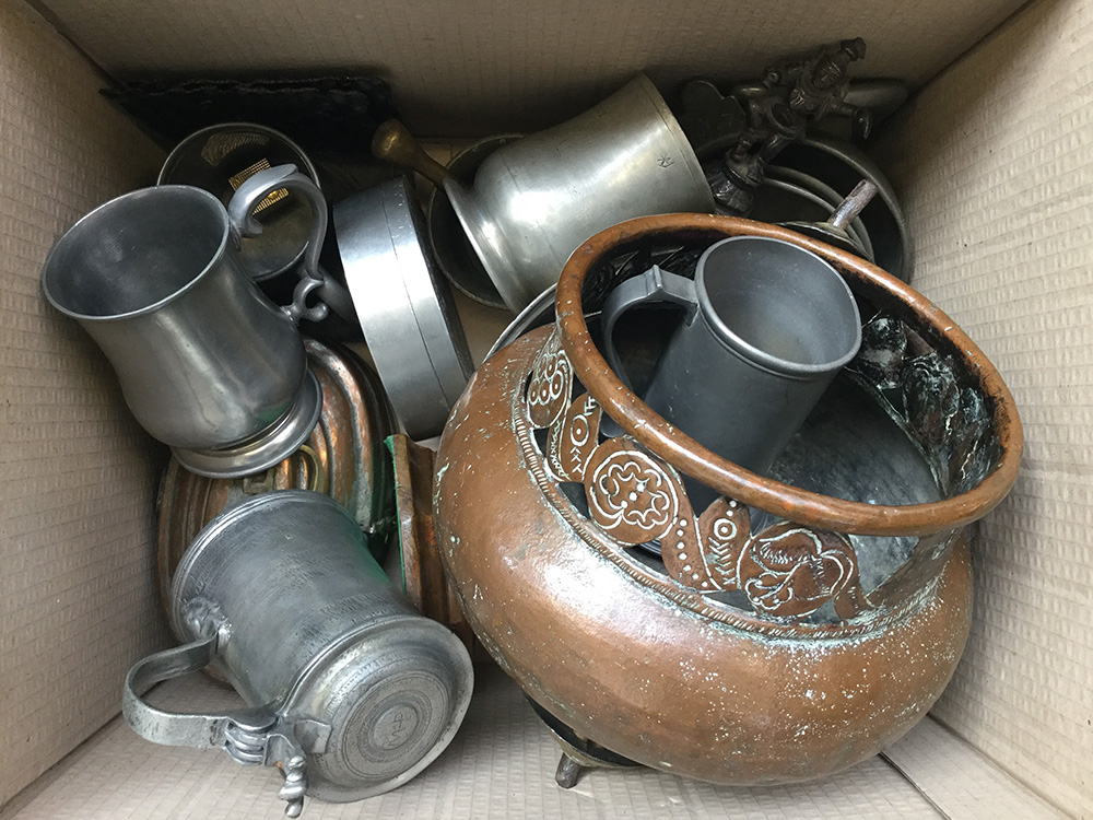 Cartone contenente numerosi oggetti di materiali e per usi differenti (difetti)