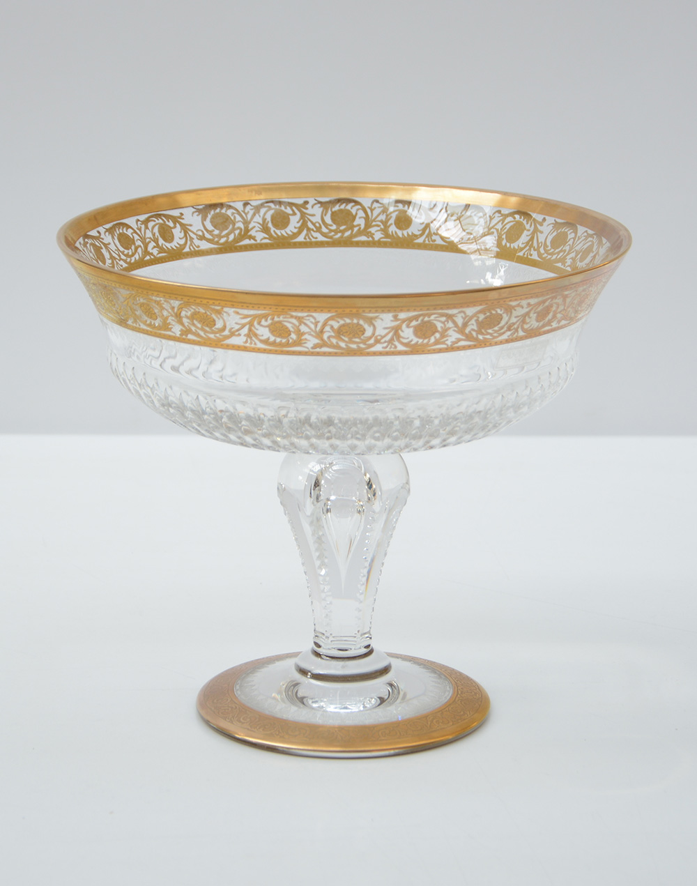 Manifattura francese St. Louis. Alzata in cristallo molato decorata con profili dorati (h cm 19)