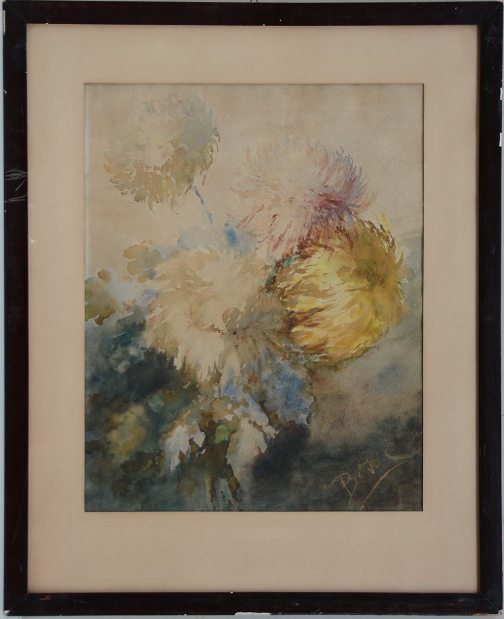 Firma indecifrata, "Fiori" acquerello (cm 56x44) firmato in basso a destra, in cornice (lievi difetti)