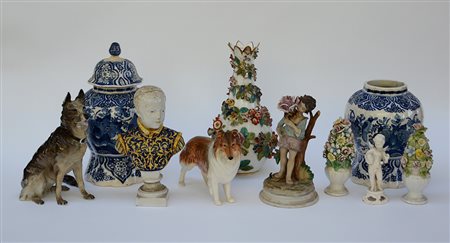 Cartone contenente tre vasi e alcune sculture in ceramica di manifatture...