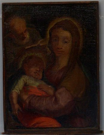 Scuola veneta del secolo XVIII "Sacra Famiglia" olio su tela (cm 36x27) (difetti e restauri)
