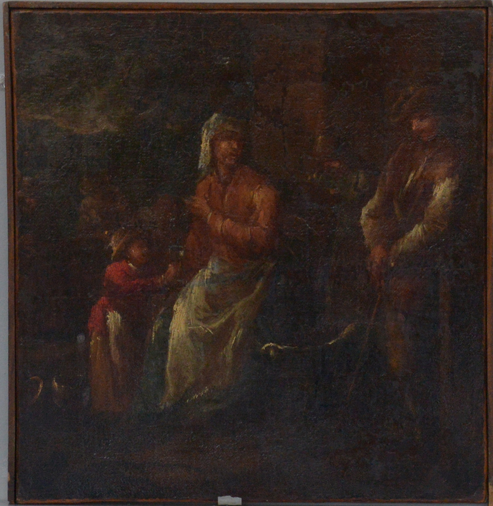 Scuola della fine del secolo XVIII "Scena di genere" olio su tela (cm 40x38) (gravi difetti e restauri)