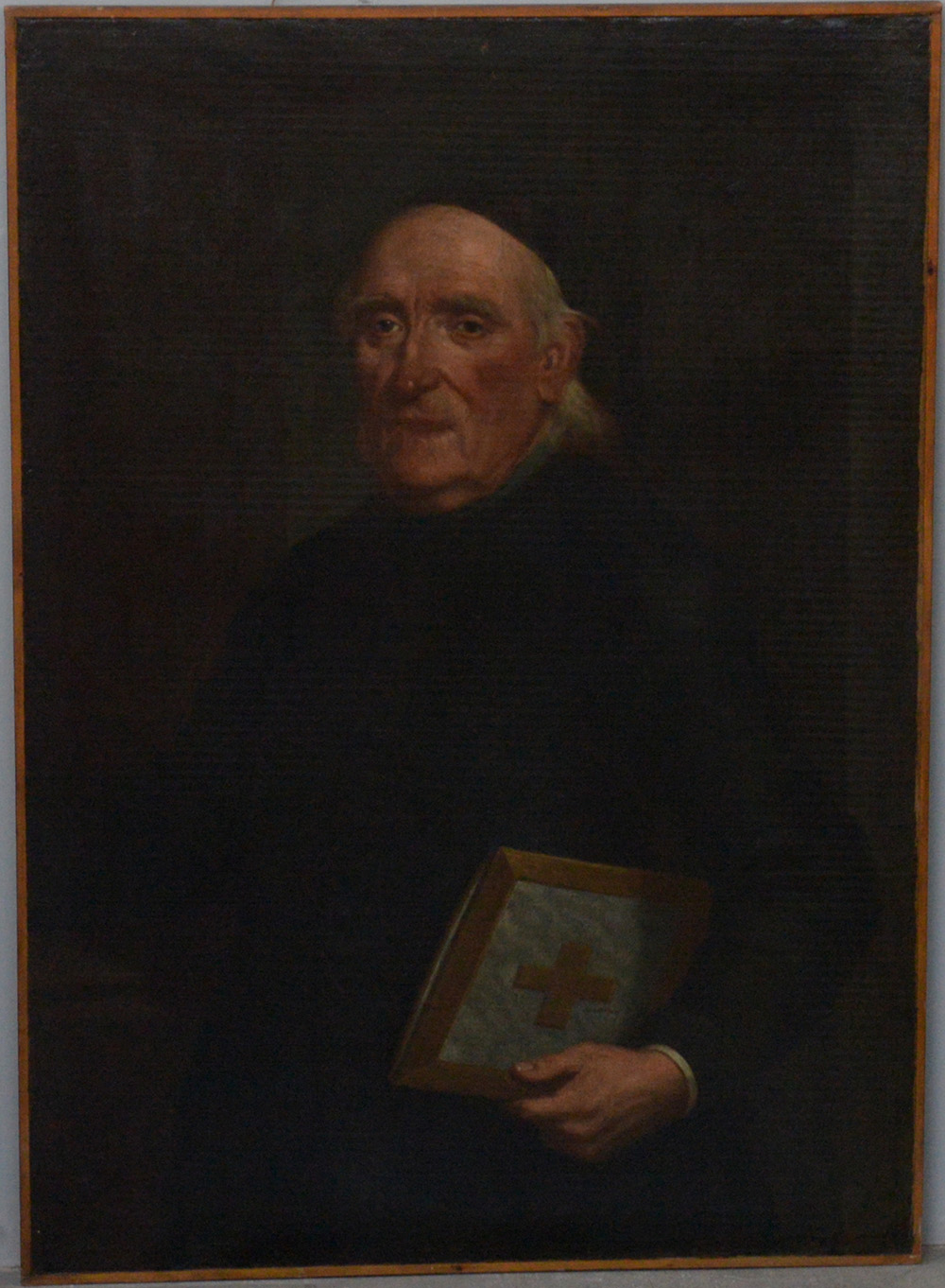 Scuola del secolo XVIII "Ritratto di prelato con libro" olio su tela (cm 99x70) (restauri)