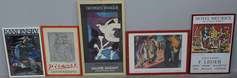 Lotto composto da cinque poster di mostre di arte moderna e contemporanea, misure diverse in cornici (difetti)