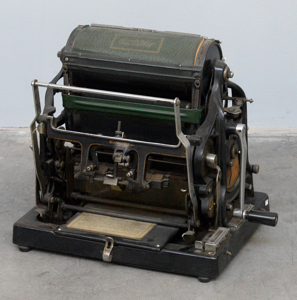 "Gestetner" piccola stampante da tavolo a manovella, inizio secolo XX (difetti e mancanze)