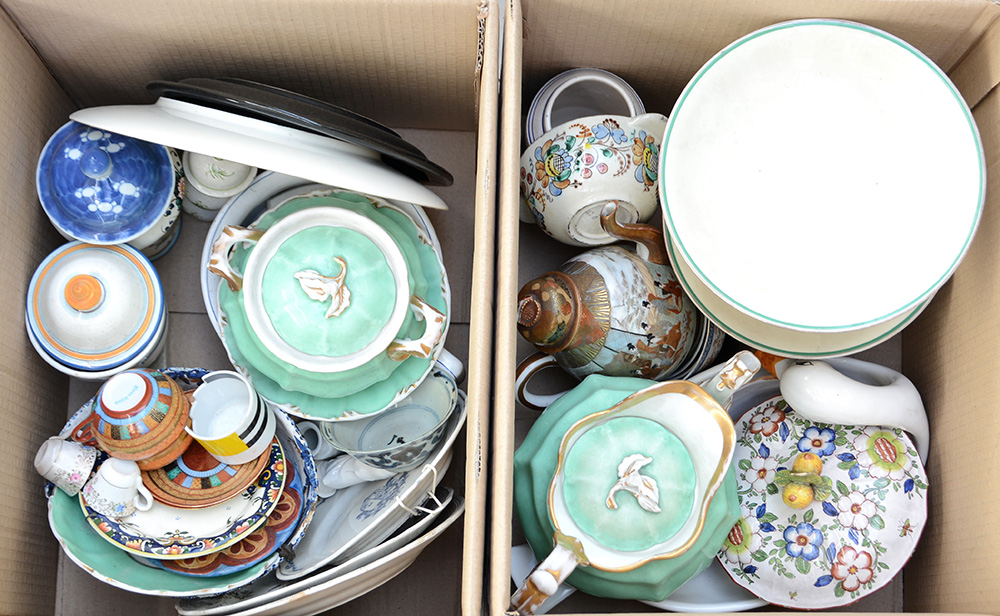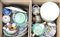 Lotto due cartoni contenenti numerosi oggetti per la tavola in ceramica (difetti)