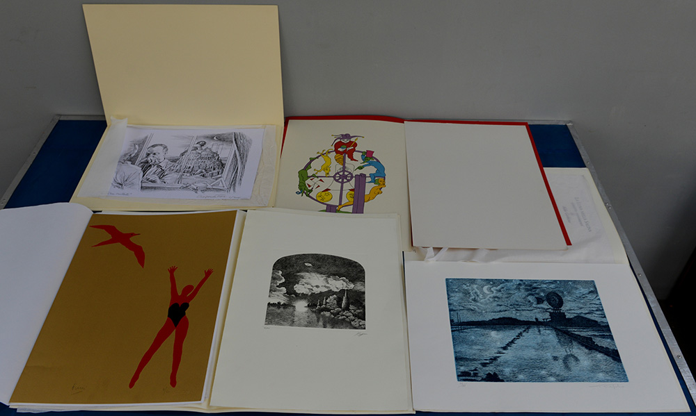 Cartella contenente sei grafiche di autori differenti (difetti)