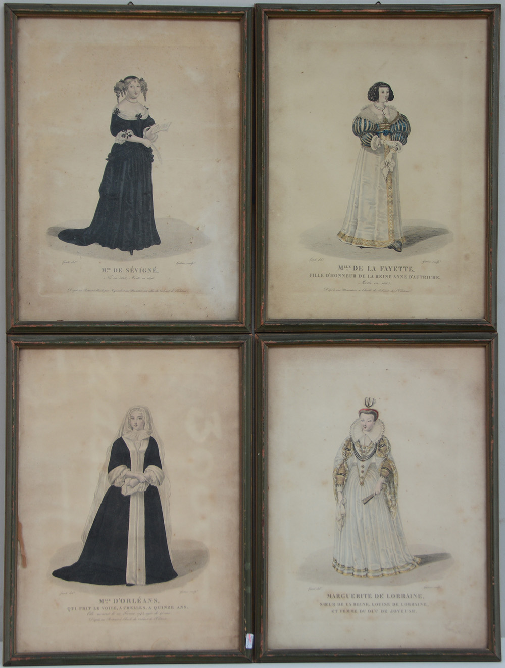 Lotto composto da quattro stampe a colori raffiguranti donne in abiti...