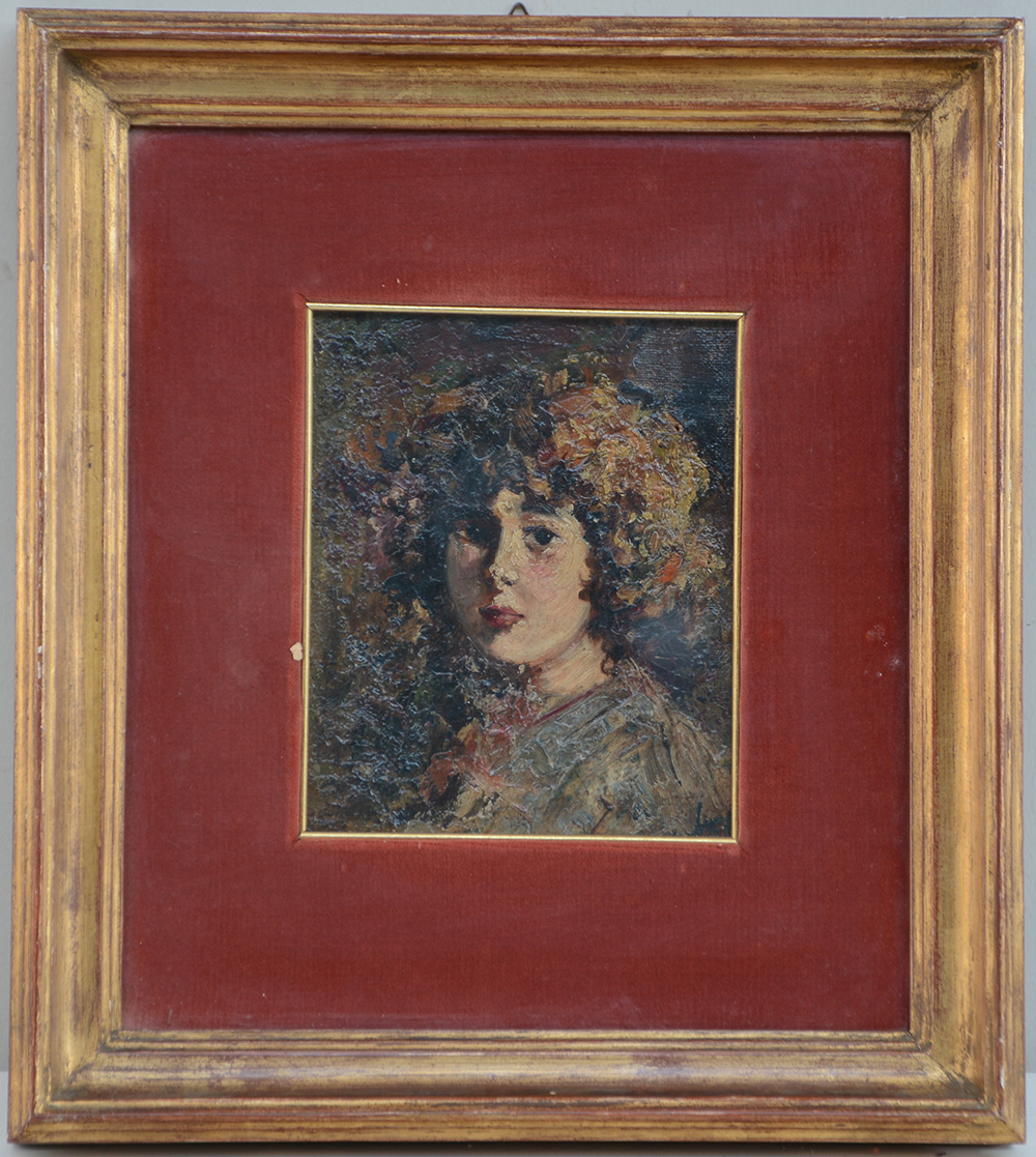Ignoto "Figura di bambina" olio su tavoletta (cm 18x14) in cornice