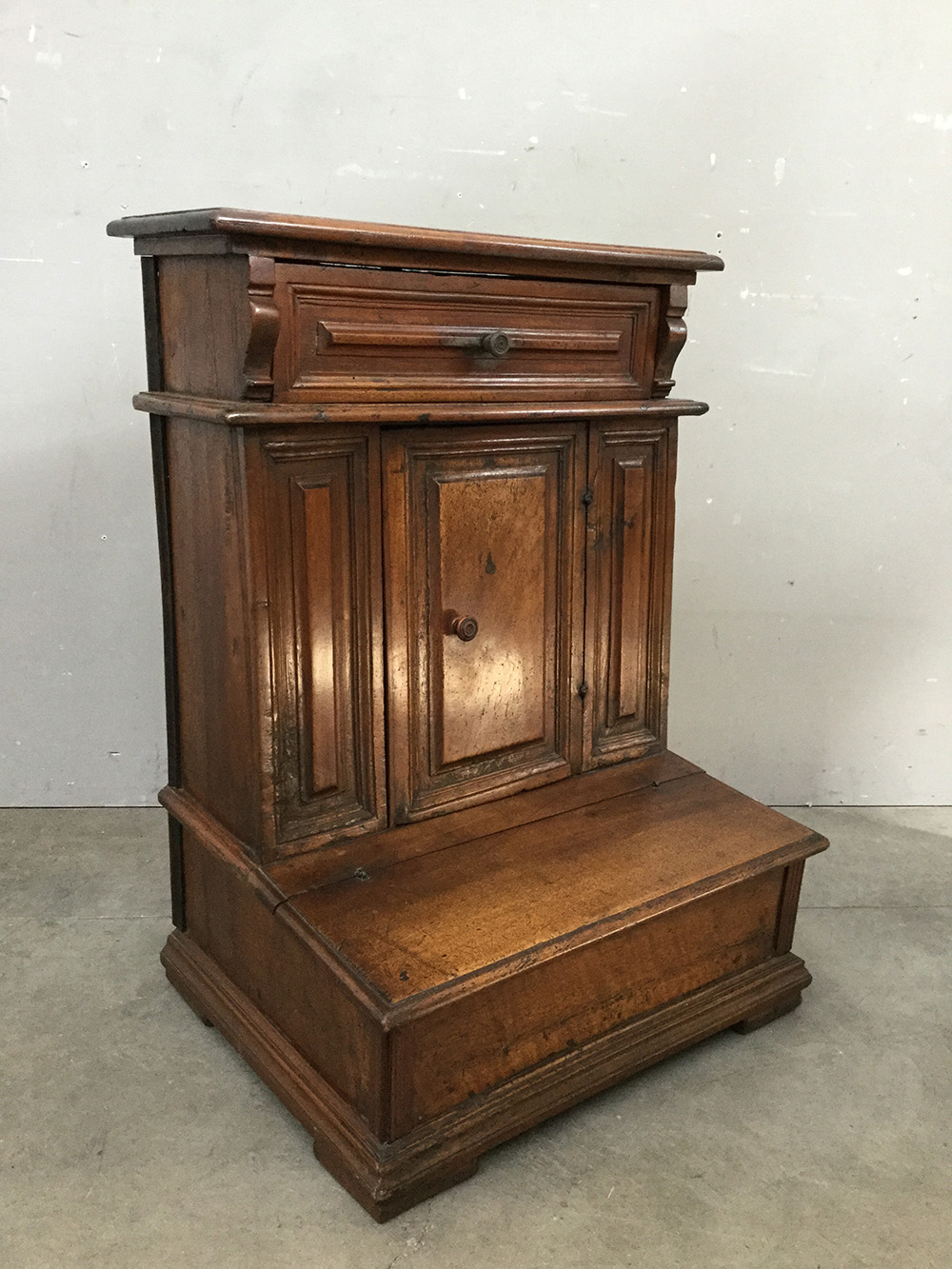 Antico inginocchiatoio con cassetto, sportello centrale e predella...
