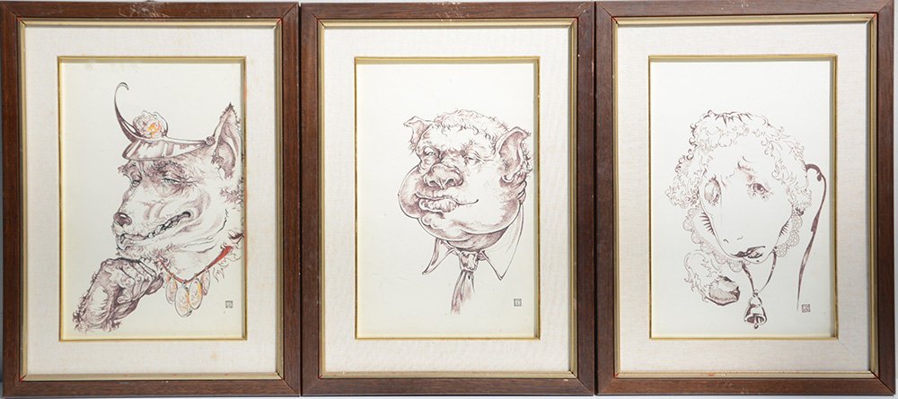 Ignoto "Animali fantastici" gruppo di cinque disegni (cm 36x23) in cornici